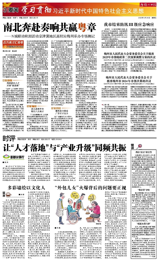 近日,嘉应学院美术学院“双百行动”师生团队积极响应“百千万工程”号召,分赴梅县区城东镇石月村、雁洋镇金柚公园开展墙绘和路面彩绘活动,以艺术赋能乡村建设,扎实推进“双百行动”,让高校智慧和青春力量扎根乡土、点亮乡村。(详见《梅州日报》9月25日3版)