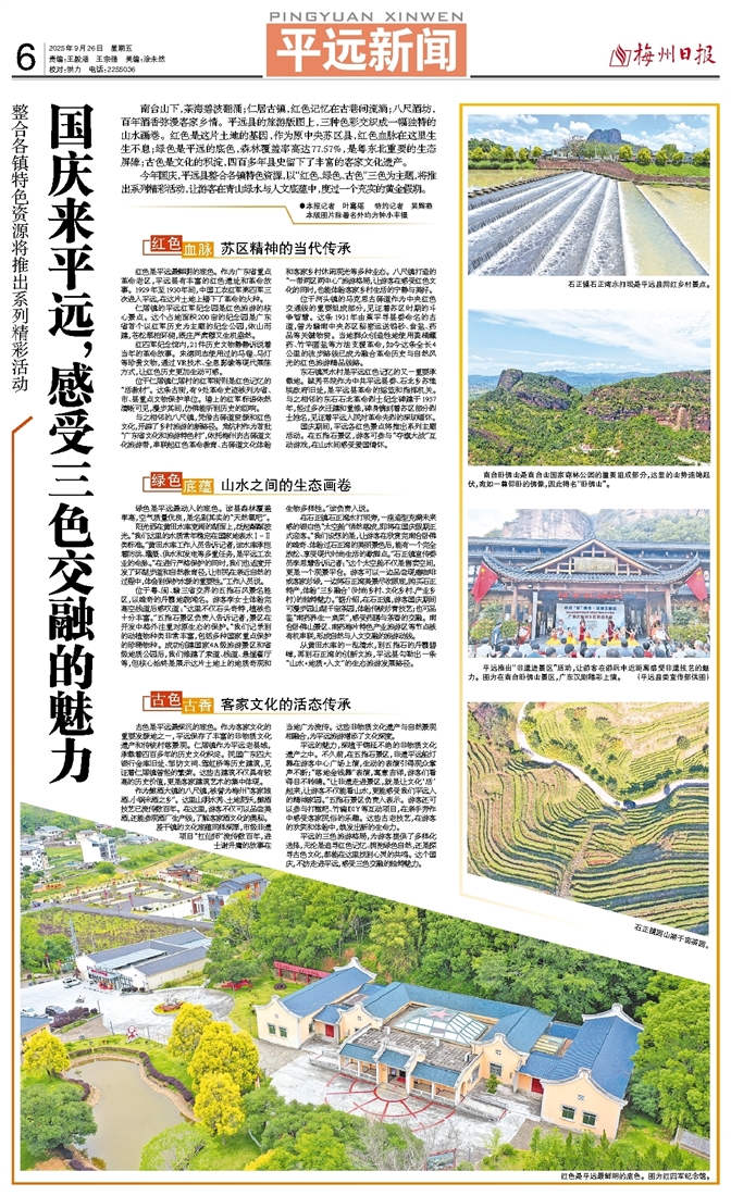 今年国庆,平远县整合各镇特色资源,以“红色、绿色、古色”三色为主题,将推出系列精彩活动,让游客在青山绿水与人文底蕴中,度过一个充实的黄金假期。