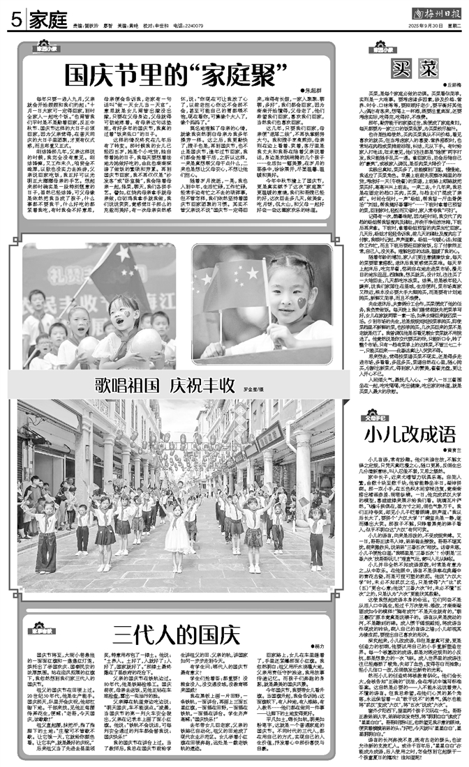 随着岁月流逝,一晃,我也人到中年,生活忙碌,工作忙碌,经常手边有忙之不去的琐碎事,但不管怎样,我们依然坚持着国庆节回家团聚的习惯。其实不管父亲说不说“国庆节一定得回来,难得有长假,一家人聚聚、聊聊,多好”,我们都会回家,因为渐渐开始懂得,父母老了,他们希望我们回家,喜欢我们回家,当然我们也喜欢回家。