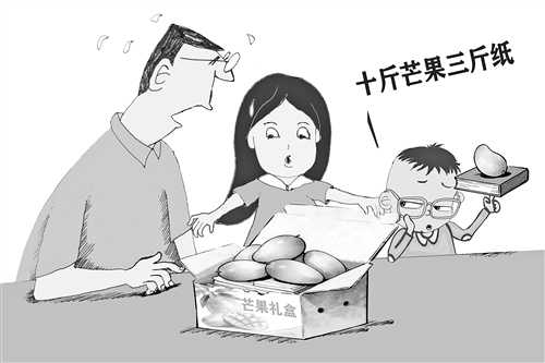 多位网友反映,在山东济宁市任城区一家商店购买的芒果礼盒里,在芒果下方垫了来历不明的书本和纸张,此事引发争议。有网友称“十斤芒果三斤纸”,因礼盒多作走亲之用,被戏称为“断亲礼盒”。