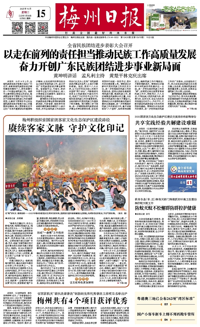 千年客韵,声声不息;文化长河,涓滴汇海。梅州对客家文化的保护传承不仅在于“破圈”,更注重“扩圈”。从粤闽赣桂四地客家山歌剧联盟成立,到广东汉剧、客家山歌赴20多个国家和地区交流展演;从央视《舌尖上的中国》聚焦客家美食,到国产影视剧客家话译制版登陆“一带一路”沿线国家和地区……客都梅州品牌越擦越亮,客家文化软实力显著提升。