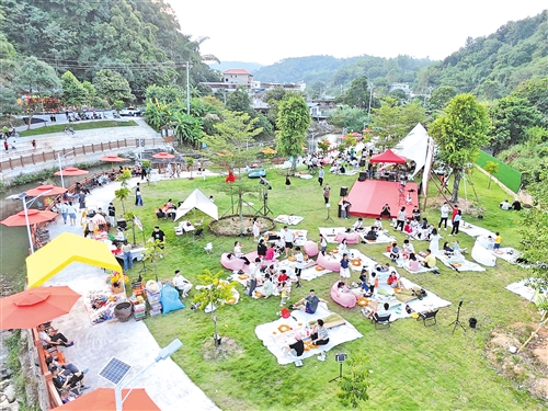 位于长沙镇大密村坑尾的“种院子的熊赳赳”IP打造了一场音乐与乡村的跨界派对,成为假期一大亮点。不少游客除了在咖啡厅品尝香浓咖啡,还在大草坪上享受微风带来的惬意。该景点还推出了系列活动,涵盖民谣、摇滚和本地山歌等多元音乐演出,现场还设有山野集市,汇集客家特色美食、饮品和手工艺品。“我们当初打造‘种院子’,就是想给城市人提供一个能暂时逃离喧嚣、回归本真的地方。希望通过音乐这个载体,让大家在优美的田园风光里放松身心。”种院子创始人、主理人熊赳赳表示,“双节”期间人流量达1万人次,大部分都是举家出游或者朋友结伴出行。