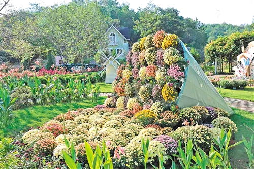 城北镇的梅州爱丽丝庄园也迎来了客流高峰。庄园内上千株菊花竞相绽放,粉、黄、紫等10多种花色交织成绚烂花海。微风拂过,菊香沁人心脾,与蓝天白云相映成趣,宛如童话世界,成为市民游客拍照打卡的好去处。庄园内还设置了多个拍照场景,如花海、风车、电话亭等,满足游客不同拍照需求。