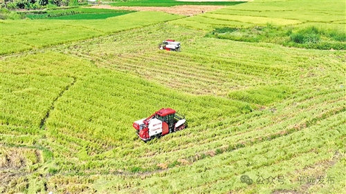 金秋十月,广袤田野上稻浪翻滚,又是一年晚稻丰收季。时下,平远逾10万亩晚稻陆续开镰收割,农户抢抓晴好天气,通过机械化作业与科学管理实现高效增收,一幅现代农业丰收图景正在展开。