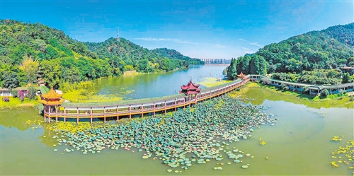 作为我市建设的绿美点之一,清凉山郊野公园秉持“以绿为体,以水为魂,山水相依”的设计理念,打造“一山(森林山体)一水(泮坑水库)一径(林间步道)”,通过采取低质低效林优化提升、松材线虫病染疫松林改造提升和森林抚育等措施,种植抚育红锥、楠木、山樱花等乡土阔叶乔木和桃金娘、油茶等灌木,打造绿上添花、花果飘香的绿美森林,配以建有亲水平台和环湖栈道、环境优美的泮坑水库,建设舒适的林间登山锻炼道和以森林科普教育为主的自然教育径,建成永久保留的绿美点,让市民真正走进森林、共享生态。