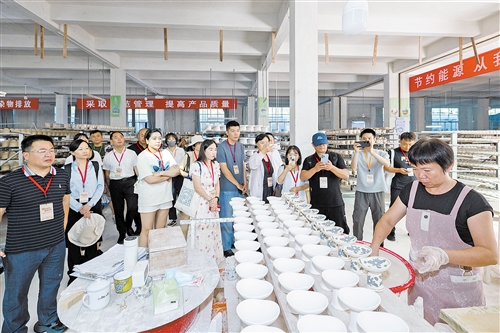 在大埔光德陶瓷烧制技艺非遗工坊,与会嘉宾观摩了这个综合性传习基地的传统工艺生产区和展销、展演、DIY体验等区域。该工坊依托梅州富大陶瓷工业旅游区,将传统技艺与旅游体验深度融合。“今天的参观对我来说也是学习,我们迪庆的陶器烧制技艺(藏族黑陶烧制技艺)也是国家级非遗,但基本上都是小工坊、家庭作坊,而大埔光德陶瓷烧制技艺已经演变发展成规模化、产业化的陶瓷行业,并且带动了当地农文旅发展,非常值得我们学习借鉴。”云南省迪庆民族文化生态保护区管理中心传承培训部主任卓玛说。