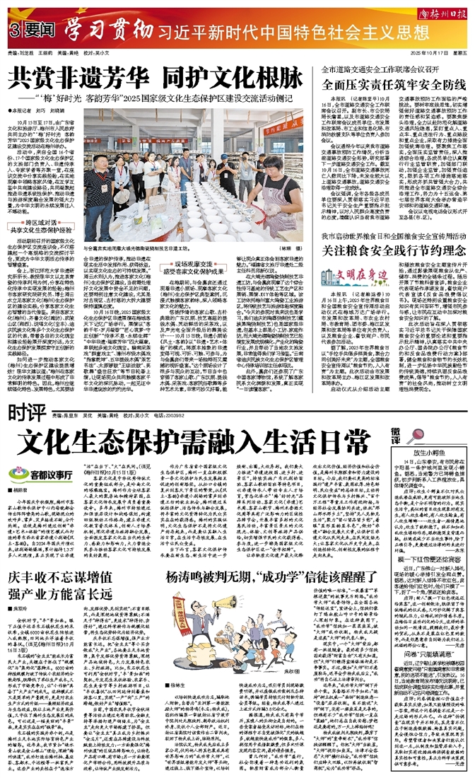 作为广东省首个国家级文化生态保护区,梅州一直在积极探索一条文化保护与民生发展相互促进的创新路径。从松口古镇的复兴到客天下景区的繁荣,从《风土·客韵》非遗小剧场的掌声到非遗工坊的就业机会,梅州通过系统性保护、活态传承与融合发展,将丰富的文化资源转化为民众实实在在的获得感。梅州的实践证明,文化生态保护不是将文化遗产封存起来,而是要让其融入生活日常,在生活中存续发展、在生活中让民众受益。