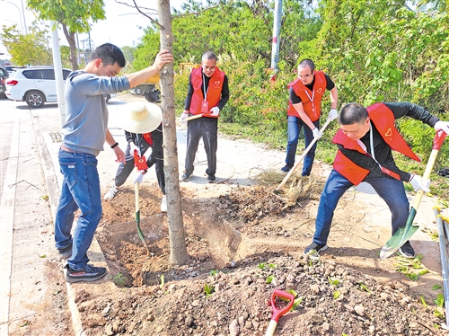 今年3月,春雨淅淅沥沥洒在兴宁高速东出口附近的一片荒地上,兴宁市部分政协委员在雨中忙着栽种“政协委员绿化共建路”的首批苗木。大家用铁锹翻动湿润的泥土,一棵棵树苗被稳稳植入土中,现场一派忙碌的景象。
