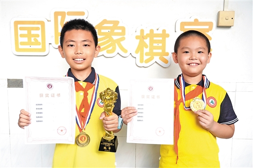 今年10月初,“荣冠杯”国际象棋棋士赛在汕头开赛,得知消息后,廖俊玮和赖林威主动向老师报名,这是他们首次站上省级赛场。