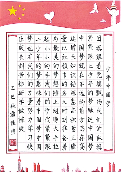▲书法 黎佳莹(梅江区元城小学502班)指导老师:梁翠榕