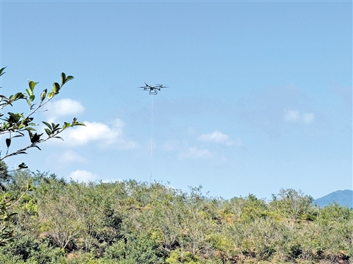 为提升效率、降低人工成本,今年该基地首次引入无人机协助运输。“油茶多种在山坡上,以往全靠人力搬运,非常费力。如今村民只需将采摘好的油茶果打包,由无人机统一运输出山,大大降低了劳动强度。”张文生说。