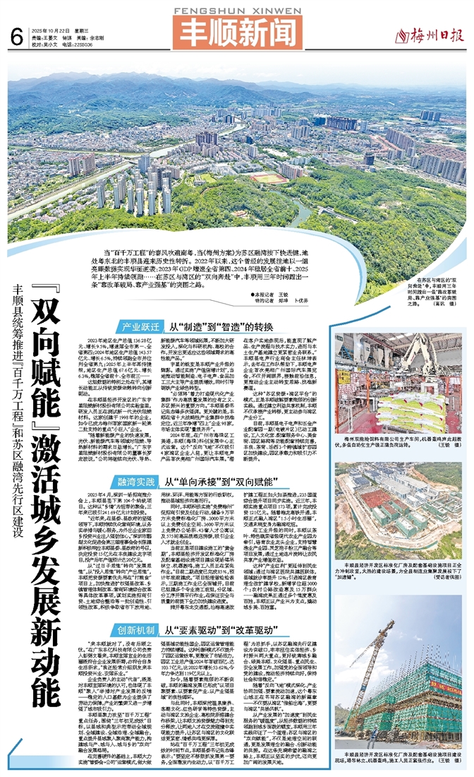 从产业发展的“加速度”到民生服务的“暖温度”,从经济数据的持续领跑到城乡面貌的蝶变,丰顺用三年实践印证了一个道理:苏区与湾区的“双向赋能”,不仅是地理空间的联通,更是发展理念的融合、创新动能的共振。在这条充满希望的融湾之路上,丰顺正以坚实的步伐,迈向更加广阔的发展天地。