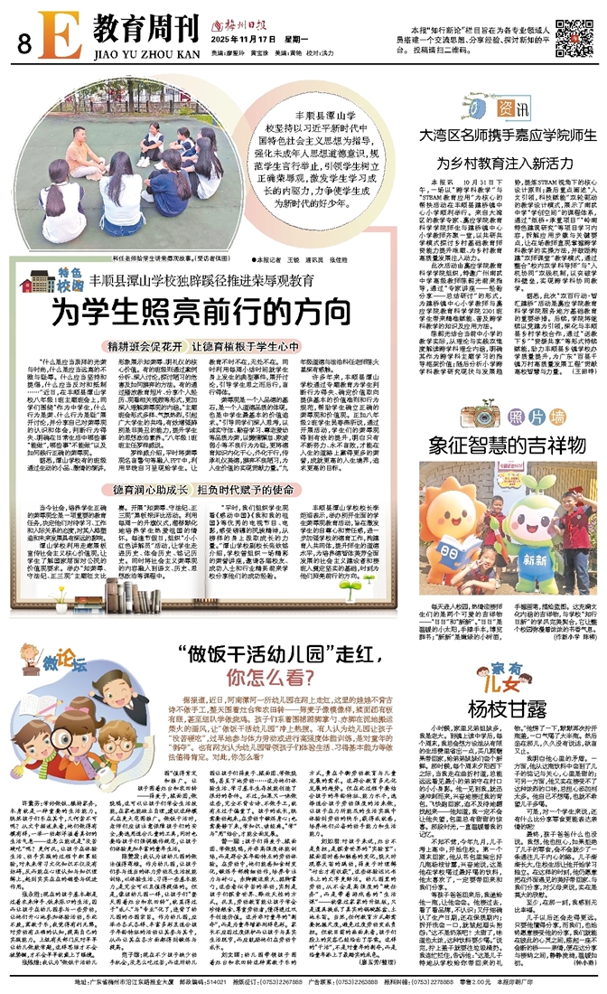 丰顺县潭山学校校长李炬滔表示,举办别开生面的学生荣辱观教育活动,旨在激发学生的自尊心和责任感,进一步加强学校的德育工作,构建育人共同体,提升师生的道德水平,为培养德智体美劳全面发展的社会主义建设者和接班人奠定坚实的基础,时刻为他们照亮前行的方向。