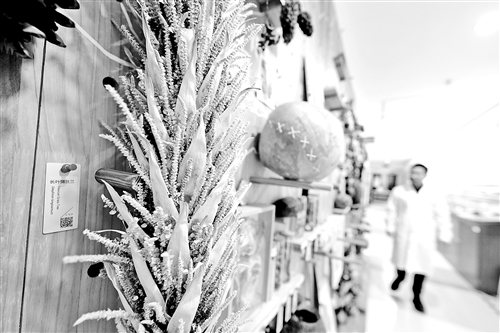11月19日在辰山中心植物种子标本墙拍摄的长叶猬丝兰种子。