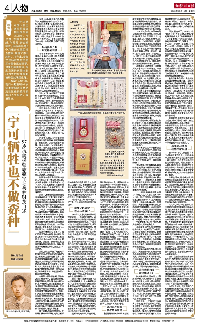 本期“人物”版,我们一起聆听97岁抗美援朝老兵林财茂讲述他的战斗故事和人生经历。敬请垂注。