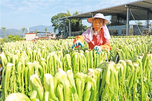 近年来,石扇咸菜形成了集种植、加工、销售于一体的经营模式,走出了一条标准化、规范化的特色产业之路。“榕绿专业合作社在村里集约了100亩土地种植芥菜,并收购村民种植的芥菜,目前松林村种植芥菜近200亩,既带动村民增收,也壮大了村集体经济。”邓荣生说,榕绿专业合作社还从梅州各地收购芥菜制作梅菜干,并创新推出“订单式预制菜”模式,根据市场需求生产咸菜包、梅菜扣肉、梅菜干牛肉酱等产品,有效提升附加值。