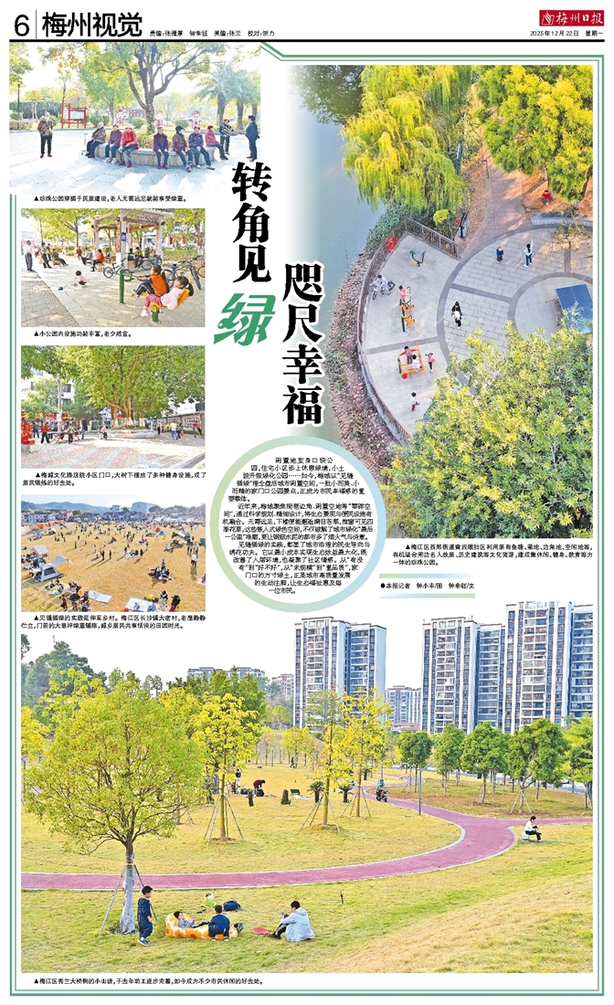 闲置地变身口袋公园,住宅小区添上休憩绿境,小土坡升级绿化公园……如今,梅城以“见缝插绿”理念盘活城市闲置空间,一批小而美、小而精的家门口公园景点,正成为市民幸福感的重要载体。