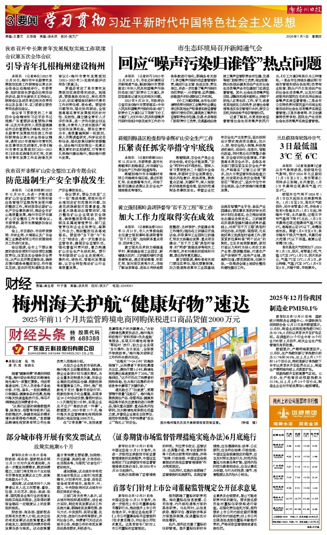 本报讯 (记者刘巧)2025年12月30日上午,市生态环境局召开新闻通气会,解读《梅州市贯彻落实〈中华人民共和国噪声污染防治法〉部门职责分工方案》,并回答媒体记者关注的相关问题。