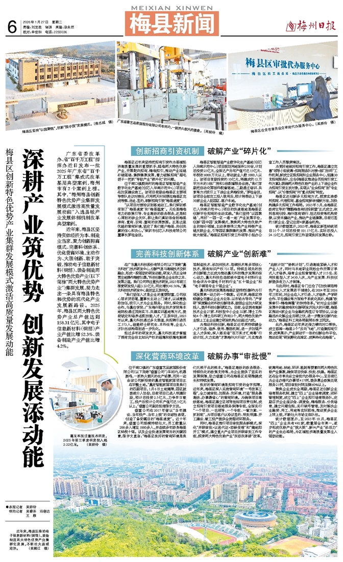 广东省委改革办、省“百千万工程”指挥办近日发布一批2025年广东省“百千万工程”集成式改革基层典型案例,梅州市有2个案例上榜。其中,“梅州梅县创新特色优势产业集群发展模式激活高质量发展动能”入选县域产业发展体制机制改革典型案例。