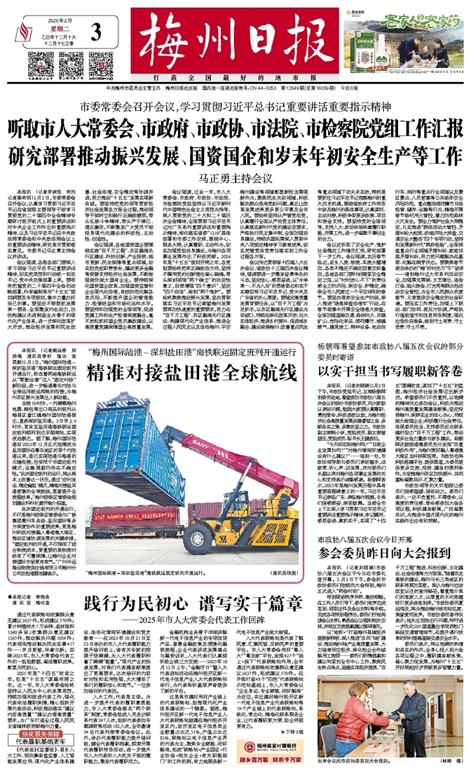 会议强调,过去一年,市人大常委会、市政府、市政协、市法院、市检察院党组坚持以习近平新时代中国特色社会主义思想为指导,深入贯彻党的二十大和二十届历次全会精神,全面贯彻习近平总书记对广东系列重要讲话和重要指示精神,深化落实省委“1310”具体部署和市委工作安排,围绕中心、服务大局,认真履职、主动作为,切实加强党组自身建设,为梅州各项事业发展作出了积极贡献。2026年是“十五五”规划开局之年,各党组要始终把牢正确政治方向,坚持不懈用党的创新理论凝心铸魂,带头深刻领悟“两个确立”的决定性意义,自觉增强“四个意识”、坚定“四个自信”、做到“两个维护”。要始终聚焦推动振兴发展,坚决贯彻落实习近平总书记寄望梅州发展要再加快速度的重要要求,努力在“百千万工程”、苏区融湾先行区建设、构建现代化产业体系、推进全过程人民民主以及法治梅州、平安梅州建设等领域彰显新担当展现新作为,聚焦民生关切领域,积极解决群众急难愁盼问题,真正让改革发展成果更多更公平惠及全市人民。要始终坚持从严管党治党,认真履行全面从严治党主体责任,认真落实新时代党的建设总要求,严格执行民主集中制,全面加强自身建设,持续巩固拓展深入贯彻中央八项规定精神学习教育成果,切实把管党治党责任落实到工作全过程各方面。