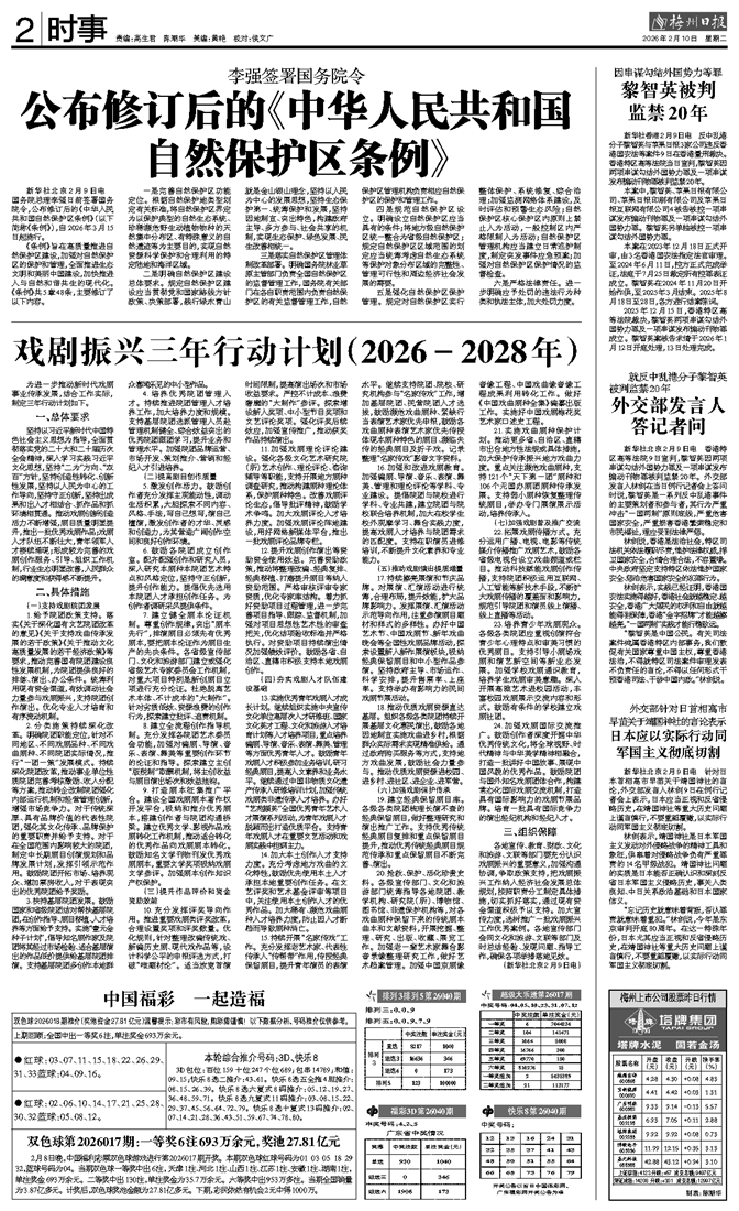 新华社北京2月9日电 国务院总理李强日前签署国务院令,公布修订后的《中华人民共和国自然保护区条例》(以下简称《条例》),自2026年3月15日起施行。