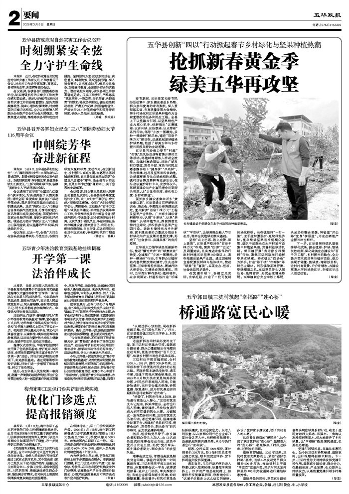 春节期间,五华县紧扣春节民俗活动集中、家乡建设者返乡热潮、群众参与度高的有利契机,深入贯彻落实省、市高质量发展大会精神,将乡村绿化和五华坚果种植作为当前重要政治任务和民生工程。全县上下以党建为引领,以坚果特色产业为核心抓手,创新推出“以赛植绿、以贤兴绿、以俗焕绿、以点带绿”系列行动,倡导“少放一围鞭炮,多种一棵绿树”新风尚,锚定“百亩千株万元”硬目标,迅速掀起爱绿植绿护绿热潮,绘就了绿美五华与乡村振兴同频共振的生动图景。