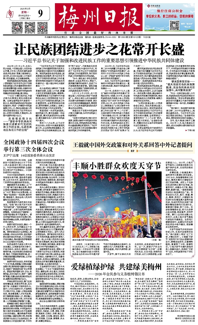 本报讯 (记者王锐)3月8日(农历正月二十),丰顺县小胜镇沉浸在一片欢乐的节日氛围中。由小胜镇孝友堂文化研究促进会主办的2026年非遗天穿节迎灯巡游盛典在这里举行,当地群众与八方来客欢聚一堂,共赏民俗盛宴,同祈风调雨顺、家国兴旺。