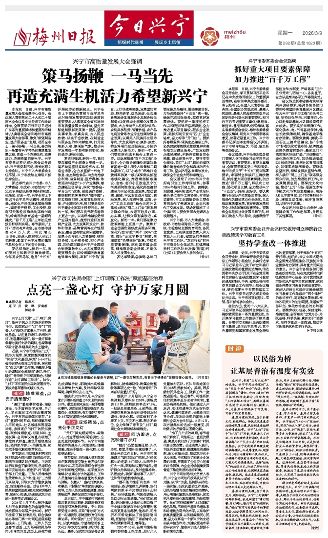 罗达祥强调,各镇街、各部门要发扬龙马精神,围绕亮诺目标,万马奔腾跑好“十五五”第一程,确保完成目标任务,取得更好发展成效。要抓好一季度经济工作,加强经济运行监测调度,全力推进重点项目建设,服务企业发展,狠抓招商引资与“四上”企业培育,奋力夺取“开门红”。要抓好春耕备耕、绿美生态建设工作,坚决完成撂荒耕地复耕复种和高标准农田建设任务,广泛发动群众植绿增绿,不断夯实粮食安全根基,建设绿美兴宁。要守牢安全底线,紧盯“上灯”期间的烟花爆竹销售燃放安全和森林防灭火等工作,坚决防范各类事故发生,确保全市社会大局和谐稳定。
