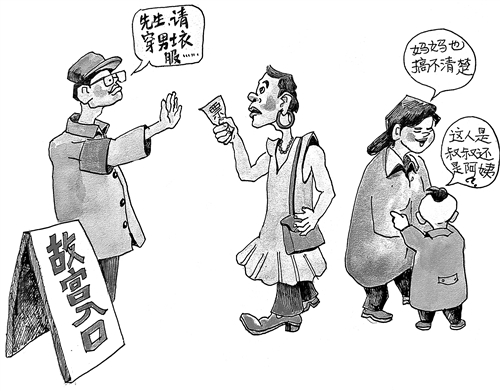 3月14日,一名男子男扮女装试图进入故宫参观,被工作人员拦下拒绝入内。工作人员表示,故宫参观须知中明确要求“请保持衣容整洁,不要做出有碍观瞻、有损形象的行为”,并判定该男子男扮女装的装扮属于“奇装异服”,不符合故宫规定,因此拒绝其入院。该男子对此表示质疑,称“我花钱了为什么不让进”,但工作人员坚持要求其换回正常服装后方可入内。