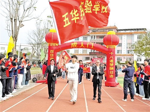 本报讯 近日,五华县实验学校体育场举行2026届高三成人礼暨高考百日誓师主题团日活动,团五华县委、县教育局相关负责人,学校领导班子及高三全体师生齐聚。活动将成人加冕、宪法教育与高考誓师融合,激励学子担当前行。