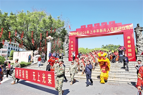 在龙门广场新兵入伍欢送仪式现场,锣鼓喧天、热闹非凡。刘鸿涛、刘裕君向新兵战士们表示热烈的祝贺,向2025年度荣立三等功的现役军人家庭致以崇高的敬意,向工作在征兵一线的工作人员表示衷心的感谢。希望新兵们坚决听党指挥,忠诚拥护核心,发扬客家人不怕苦、不畏难的精神,保持昂扬向上、奋勇争先的斗志,刻苦训练、精益求精,在实战实训中锻造钢筋铁骨、磨砺坚强意志,努力成为有灵魂、有本事、有血性、有品德的新时代革命军人,让“蕉岭兵”的风采在军营中熠熠生辉。县委、县政府将全力落实好拥军优属各项政策,让军人安心服役、建功军营。