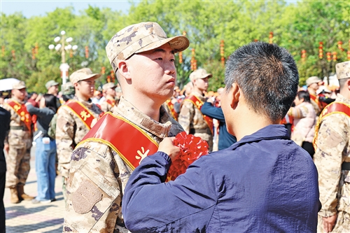 入伍新兵身着崭新军装,胸戴大红花,肩披“光荣入伍”绶带,以昂扬的姿态整齐列队。他们庄严宣誓,誓言铿锵有力,展现出投身军旅、报效祖国的坚定决心。“我会努力跟上训练节奏,坚决服从命令、听从指挥,尽最大努力完成上级交办的各项任务,争取立功,为国家贡献自己的一份力量。”新兵罗集印说。“希望在军营里锤炼意志、强健体魄,服役期间争取立功受奖,为家乡争光,为蕉岭争光。”新兵钟琪表示。