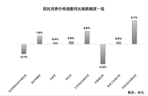 1—2月,全市居民消费价格指数(CPI)同比下降0.8%。全市社会消费品零售总额89.41亿元,同比增长0.9%。消费价格同比下跌,部分服务类价格小幅上涨。