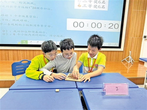 平远县实验小学数学文化节趣味盎然。学校按年级设计特色活动,一年级玩转凑十法与计数器,二年级巧手剪出对称图形、认读时间,三至六年级依次开展巧算 24 点、数学谜语与数独、侦探破案与数字华容道、“金牌小讲师” 展示,让学生在游戏与实践中感受数学乐趣、提升思维能力。蕉岭县桂岭学校以“智动思维,慧玩数学”为主题,推出魔方竞速、七巧板闯关、百变魔尺、24 点竞速、数独探秘等分层竞技活动,让每个孩子都能找到适合自己的趣味赛场,在指尖翻飞与脑力激荡中锤炼专注力与逻辑力。