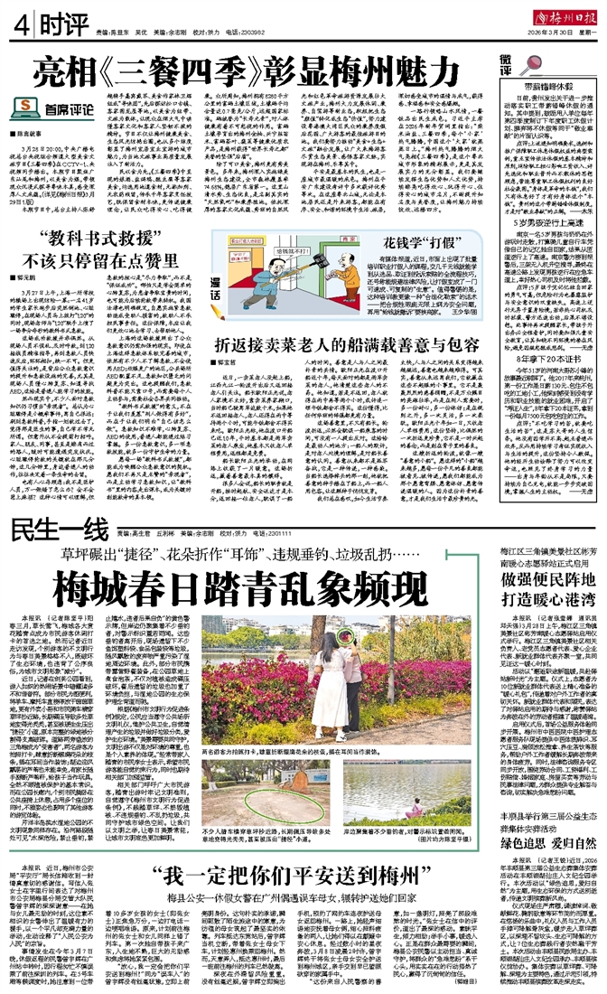 一路行领略山水风情,一餐饭品出民生底色。习近平主席在2026年新年贺词里指出:“柴米油盐、三餐四季,每个‘小家’热气腾腾,中国这个‘大家’就蒸蒸日上。”梅州热气腾腾的烟火气亮相《三餐四季》,是这个粤北城市形象的精彩展示,更是其发展实力的充分彰显。我们要继续发挥生态优势和人文优势,持续擦亮吃得放心、玩得开心、住得安心的城市名片,不断提升知名度与美誉度,让梅州魅力持续绽放、远播四方。