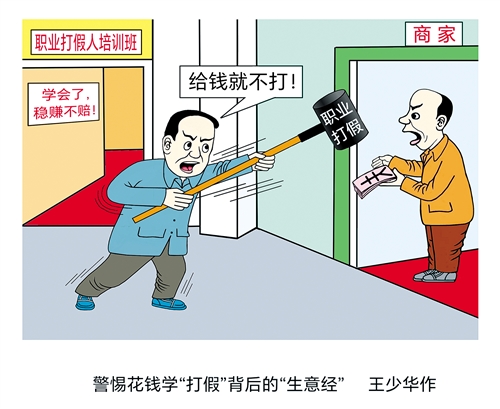 有媒体报道,近日,市面上出现了批量培训职业打假人的课程,交几千元钱就能学到从选品、取证到投诉索赔的全流程技巧,还号称能规避法律风险,让打假变成了一门可速成、可复制的“生意”。值得警惕的是,这种培训教更像一种“合法化勒索”的话术——把合规性瑕疵无限上纲为安全问题,再用“给钱就撤诉”要挟商家。王少华/图