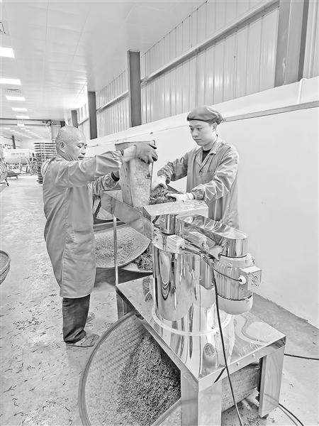 山间采茶忙,山下制茶香。沿着蜿蜒山路来到茶厂车间,新鲜采收的茶青正经历着从鲜叶到干茶的蜕变。摇青机的转动声、杀青时的蒸汽声此起彼伏,浓郁的茶香在厂房内层层弥漫,沁人心脾。“今年基地春茶茶青产量约10万斤,能制成2万多斤干茶。”吴林涛指着机器上的茶青介绍,这些带着山野气息的茶叶,将通过晾青、摇青、杀青、揉捻等多道工序,最终成为备受市场青睐的佳品。