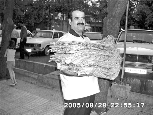 伊朗人最主要的主食是“馕”,这是用面粉做成的烤饼,味道有点像我国新疆的馕;很薄,更像北方的“烙饼”,但此馕又很大,一般人一顿吃不了一个。馕在遍布大街小巷的食品店都有售,价格低得出奇。原来是政府对全国的馕给予高额补贴,限价销售,使全国人民都能吃饱肚子。