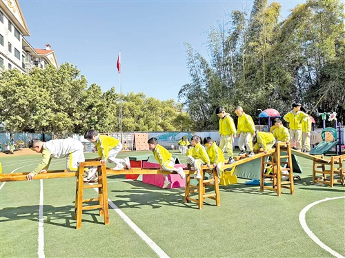 在平远县城南幼儿园,教师队伍建设同样走深走实。通过“名师引领+分层培养”等模式,园所持续打造高素质专业化教师队伍。平远县城南幼儿园园长温美华介绍,该园借助课题研究、案例分析和观摩学习,提升教师课程设计、实践与评价能力,并依托地域文化,打造“玩”美特色园本课程,促进幼儿合作能力、解决问题的能力和创造性思维发展。