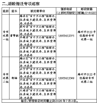 巡察进驻一览表