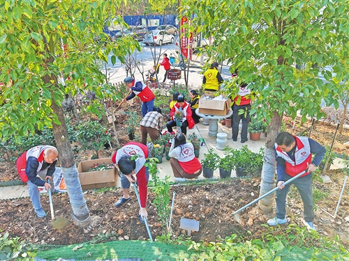 除了盘活室内闲置空间外,利园社区还推进社区“微更新”,打造邻里互动场景。社区一处约30平方米的“邻里共享花园”内繁花似锦,月季、茶花、玫瑰等各类花卉竞相绽放。花园由党组织牵头、企业供地、居民参与种植,并由“邻里”志愿服务队日常管护,既美化了环境,也有效激活社区共建活力,“幸福邻里”品牌进一步擦亮。