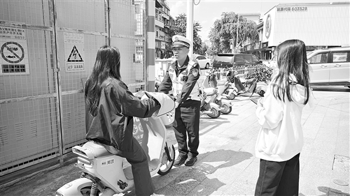 “您好,电动自行车属于非机动车,必须在非机动车道行驶,请立即改正。”刚没一会儿,一名市民驾驶电动自行车在机动车道上行驶,执法人员发现后便将其拦下,经过劝导,该市民当场表示会遵守交通规则。