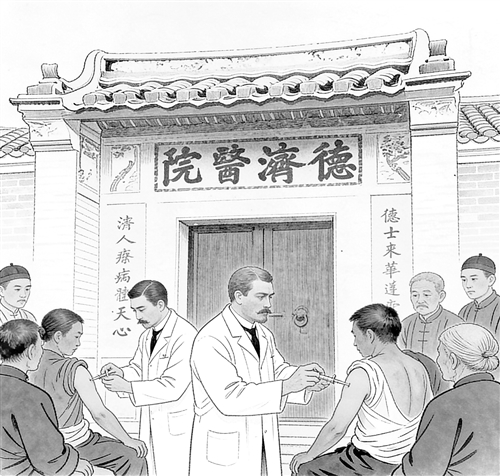光绪三十四年(1908年)春,梅县再遭疫疠之厄,而此番情势尤为严峻——鼠疫与天花同时肆虐,形成复合疫病之危局。据《韦嵩山回忆录》记述,德济医院中人满为患,病床自病房延展至露天阳台,每一张床位皆躺着痛苦呻吟之患者。韦嵩山博士临危不乱,迅即启动双疫苗接种计划:一方面继续推广鼠疫疫苗,另一方面从东洋紧急调运天花疫苗,并张贴告示公布接种时间,为全院员工及居民施种。