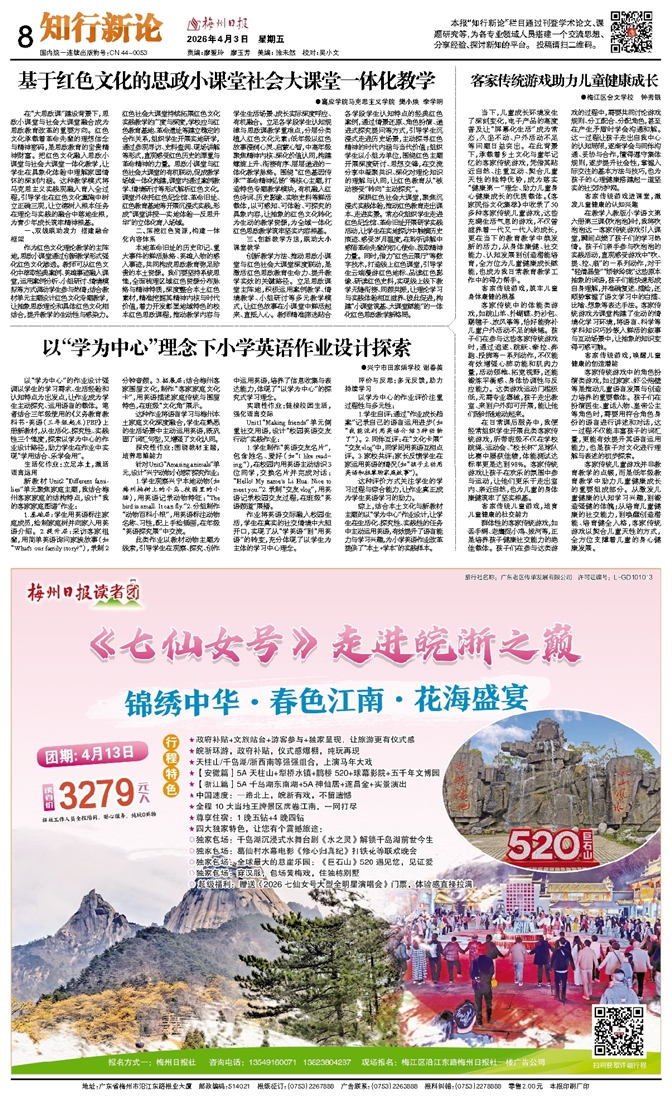 客家传统儿童游戏并非教育教学的点缀,而是低年级教育教学中助力儿童健康成长的重要组成部分。从激发儿童健康的认知学习兴趣,到锻造强健的体魄;从培育儿童健康的社交能力,到唤醒创造潜能、培育健全人格,客家传统游戏以契合儿童天性的方式,全方位支撑着儿童的身心健康发展。