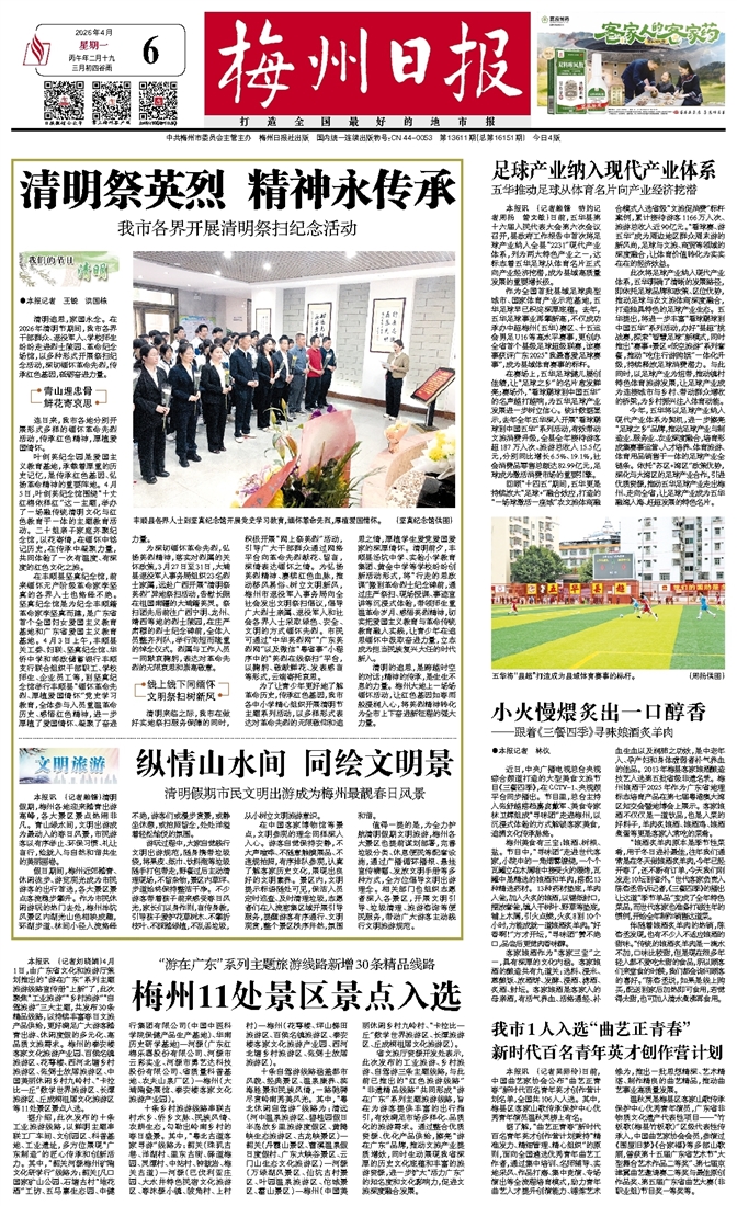 本报讯 (记者赖锋 特约记者周扬 曾文敏)日前,五华县第十六届人民代表大会第六次会议召开,县政府工作报告中首次将足球产业纳入全县“2231”现代产业体系,列为两大特色产业之一,这标志着五华足球从体育名片正式向产业经济挖潜,成为县域高质量发展的重要增长极。