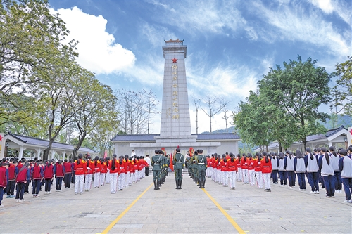 本报讯 清明节前夕,梅县区各中小学校纷纷组织学生就近前往革命烈士纪念碑、烈士陵园、革命纪念馆等红色教育基地开展清明祭扫活动,缅怀先烈、致敬英雄,引导学生用实际行动表达对革命先烈的敬仰之情,厚植爱党爱国爱乡情怀。部分学校利用主题团课、主题队会,通过图文并茂的课件、感人至深的视频,带领学生穿越历史的长河,走进那段波澜壮阔的革命岁月,激励学生珍惜如今来之不易的美好生活。部分学校通过诵读经典,绘制手抄报、黑板报等活动,从中深刻感受中华民族传统文化的魅力,更将先烈们的精神铭记于心,让传承的种子在心底生根发芽。