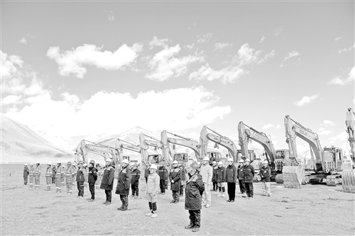 图为中广核西藏当雄乌玛塘50兆瓦光热电站破土动工现场(4月6日摄)。