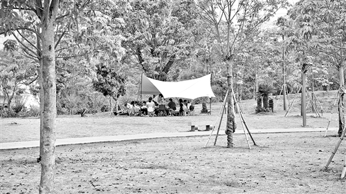 更令人痛心的是,部分游客对自然景观的蓄意破坏。记者在芹洋加油站后侧的小公园看到,一些游客无视公园规定,肆意践踏草坪,在草坪上扎帐篷、野餐和躺卧,甚至有些家长还给小朋友准备了滑草板,全然不顾公园内“爱护植被”的警示标识。在泮坑旅游风景区,尽管水库周边设置了防护栏和“水深危险 禁止靠近”的警示牌,但仍有游客罔顾安全,在临水凉亭里垂钓,而且附近就有高压电线,不仅自身安全堪忧,遗留的鱼饵塑料袋、食品包装袋也严重污染了水域环境。