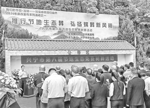 4月3日,兴宁市第八届节地生态免费树葬活动在兴宁市殡仪馆举行,共69位逝者以树葬方式长眠于绿树之下,以绿色简约的方式完成生命最后的回归。活动现场庄重肃穆、文明简约。家属们在工作人员指引下,将可降解骨灰盒深埋树下,以鲜花寄托哀思,全程不设香烛纸钱,尽显文明殡葬新风尚。