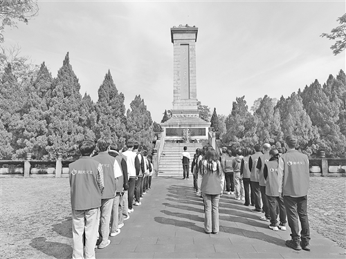 日前,兴宁市齐昌中学团委组织30余名师生代表前往神光山烈士纪念碑开展清明祭英烈主题活动,同学们为先烈送上鲜花,清扫纪念碑周边的落叶与尘土,用行动表达对先烈的敬意。